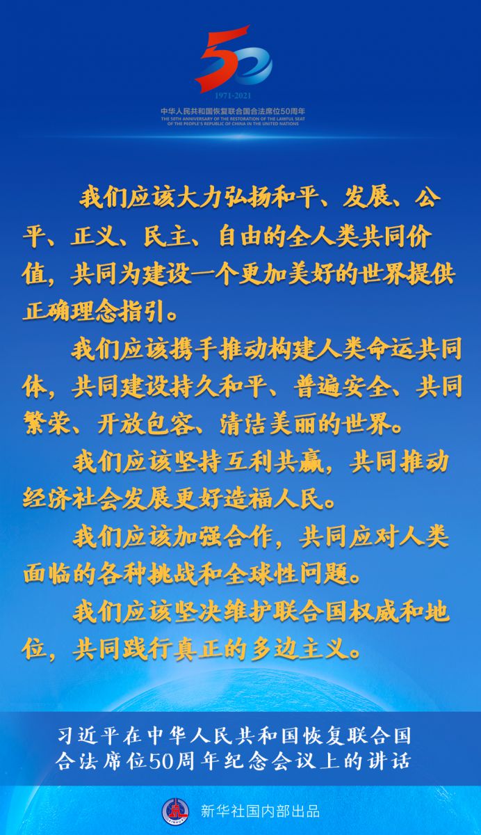 在恢復聯(lián)合國合法席位50周年這個具有特殊意義的歷史時刻,以“共同”超越分歧、以“共同”凝聚力量,傳遞著站在歷史正確的一邊、人類進步的一邊的大國擔當,展現出走向偉大復興的中華民族“為世界謀大同”的歷史自覺。