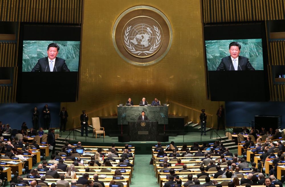 2015年9月28日,國家主席習近平在紐約聯(lián)合國總部出席第70屆聯(lián)合國大會一般性辯論并發(fā)表題為《攜手構建合作共贏新伙伴 同心打造人類命運共同體》的重要講話。