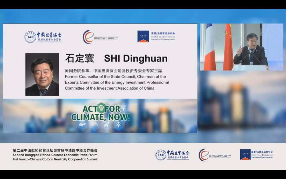國(guó)務(wù)院原參事、科技部秘書長(zhǎng)、能投委主席石定寰表示,中國(guó)投資協(xié)會(huì)能源投資專委會(huì)早在2020 年年初就發(fā)出“零碳中國(guó)”倡議,得到各方廣泛響應(yīng)。加強(qiáng)國(guó)際合作,尤其是與法國(guó)和歐盟的合作是“零碳中國(guó)”倡議的重要內(nèi)容之一。在碳中和的共同目標(biāo)下,中法應(yīng)攜起手來(lái),分享低碳發(fā)展經(jīng)驗(yàn),開(kāi)展更多技術(shù)和項(xiàng)目交流,為探索符合各自國(guó)情的低碳發(fā)展之路,實(shí)現(xiàn)碳中和目標(biāo)獻(xiàn)計(jì)獻(xiàn)策,共同為建設(shè)清潔美麗的世界,守護(hù)地球家園作出我們應(yīng)有的貢獻(xiàn)。