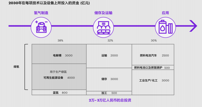 白皮書在分析時強調(diào):中國氫氣成本在氫氣售價中的占比達70%。目前,電解水的制氫成本約為 3-5 元 /Nm³,仍顯著高于化石燃料制氫和工業(yè)副產(chǎn)氫。在理想情況下,科爾尼預測,堿式和PEM 的成本都將在2035 年左右低于灰氫,屆時堿式和PEM將在各自適用的領域和場景實現(xiàn)大規(guī)模的綠氫生產(chǎn)。在電解槽成本與可再生能源電價下降的共同助推下,電解水制氫成本有望在2035年左右實現(xiàn)與灰氫平價。在氫能基礎設施建設方面,白皮書預計,在國家及地方政策的強力推動下,中國加氫站數(shù)量有望在2050年突破萬座,加氫站累計投資額逾600億元,實現(xiàn)約16%的年復合增長率。截至2021年底,中國累計建成超過190座加氫站,在營加氫站超過157座,超過日本,位居世界首位。但是,對于氫能產(chǎn)業(yè)的發(fā)展來說,這些加氫站的數(shù)量還是較少。這主要是因為,比起充電樁低廉的成本,加氫站則是動輒過千萬元的巨大投入,這也是氫能源汽車乃至氫能產(chǎn)業(yè)發(fā)展受到制約的一個重要原因。不過,2021年隨著示范城市政策的落地,國內(nèi)加氫站建設將提速,到2030年預計建成數(shù)量將超過1000座。盡管如此,白皮書指出:中國氫能產(chǎn)業(yè)某些核心材料嚴重依賴于進口。例如,固定氧化物與陰離子交換膜有很大的發(fā)展?jié)摿?,但是技術不夠成熟,只有少數(shù)公司和設備制造商參與其中。核心材料缺失制約著中國氫燃料電池行業(yè)的發(fā)展。白皮書認為,綠氫的生產(chǎn)、儲存以及供給,和燃料電池是未來十年的發(fā)展重點。針對氫能政策補貼方面,白皮書認為中國對于氫能補貼的范圍有些狹窄,基本集中在氫燃料電池領域,需要對氫能產(chǎn)業(yè)相關企業(yè)有補貼、優(yōu)惠電價、稅收優(yōu)惠等政策。需求側的政策目前主要集中在儲氫和氫能汽車領域,沒有實際的指標。