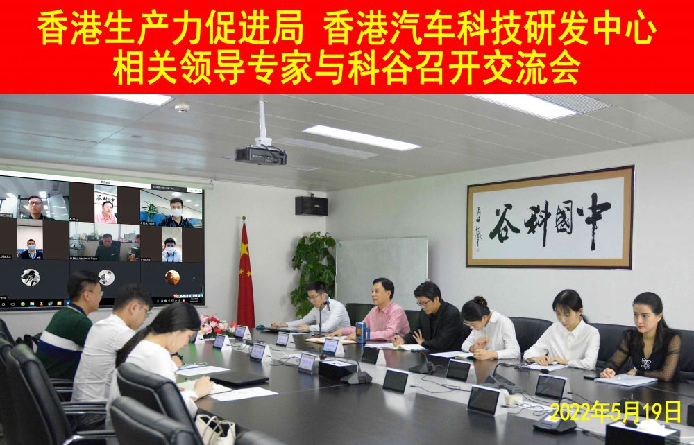 2022年5月19日上午,香港生產(chǎn)力促進局首席創(chuàng)新總監(jiān)兼汽車科技研發(fā)中心行政總裁張梓昌博士、智慧城市部總經(jīng)理兼汽車科技研發(fā)中心特別顧問潘志健博士、莫天德主管、徐偉瑜副主管、李煜高級顧問、呂永高級顧問、單楚良顧問、伍雨純顧問,以線上線下同步方式與科谷集團召開交流會??乒燃瘓F董事局主席兼科谷研究院院長余一平、中能能源總經(jīng)理付小華、科谷研究院院辦秘書柴天圣、科谷研究院助理藺海洋出席會議。