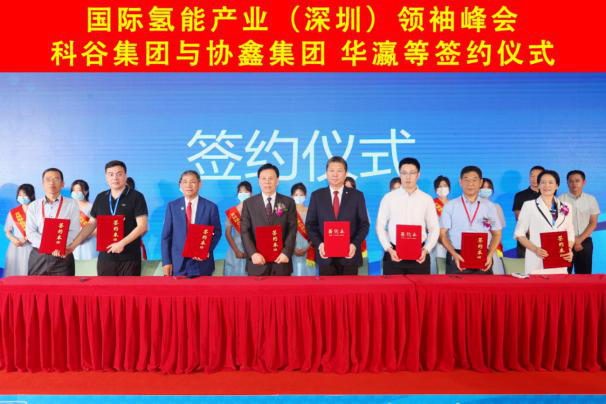 會(huì)上科谷集團(tuán)與協(xié)鑫集團(tuán)、隆基綠能、華瀛天然氣、中國(guó)航天、佛山仙湖實(shí)驗(yàn)室、上海舜華、郴州市物流園就氫能相關(guān)項(xiàng)目進(jìn)行現(xiàn)場(chǎng)簽約,并與正威集團(tuán)、中盛國(guó)泰、國(guó)鴻氫能和加拿大楓華能源在會(huì)后舉辦了簽約儀式。