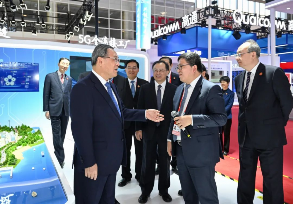 開幕式前,李強到鏈博會展館巡館并與有關企業(yè)負責人互動交流。