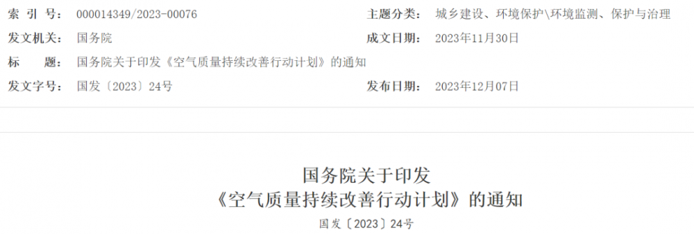 《空氣質(zhì)量持續(xù)改善行動計劃》的通知
