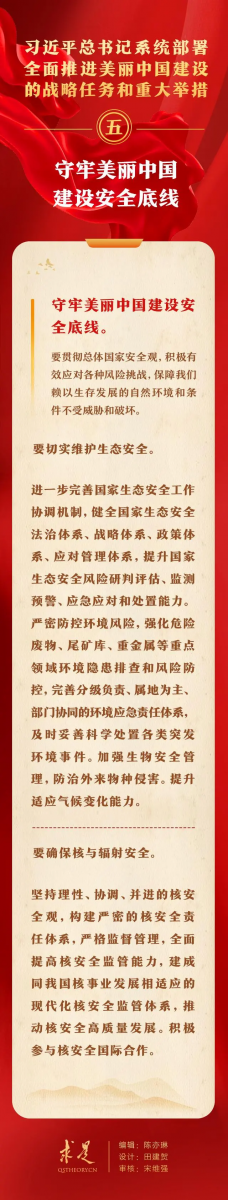 “今后5年是美麗中國建設的重要時期,要深入貫徹新時代中國特色社會主義生態(tài)文明思想,堅持以人民為中心,牢固樹立和踐行綠水青山就是金山銀山的理念,把建設美麗中國擺在強國建設、民族復興的突出位置,推動城鄉(xiāng)人居環(huán)境明顯改善、美麗中國建設取得顯著成效,以高品質生態(tài)環(huán)境支撐高質量發(fā)展。”