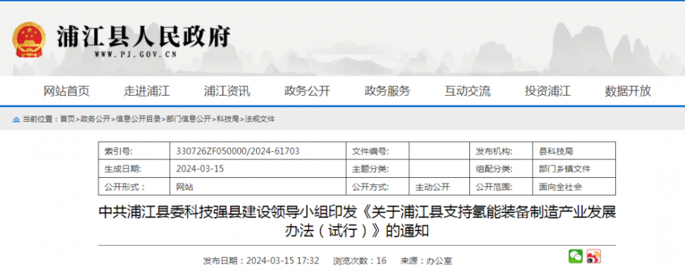 關(guān)于浦江縣支持氫能裝備制造產(chǎn)業(yè)發(fā)展辦法(試行)