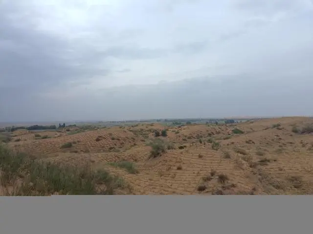 這片黃沙橫跨寧夏和內(nèi)蒙古兩地,屬于毛烏素沙地。