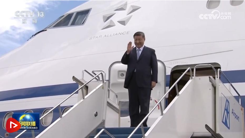 當(dāng)習(xí)近平主席乘坐的專機(jī)進(jìn)入哈薩克斯坦領(lǐng)空時(shí),哈薩克斯坦三架空軍戰(zhàn)機(jī)升空護(hù)航。專機(jī)抵達(dá)阿斯塔納納扎爾巴耶夫國(guó)際機(jī)場(chǎng)時(shí),托卡耶夫總統(tǒng)率政府第一副總理等高級(jí)官員熱情迎接。