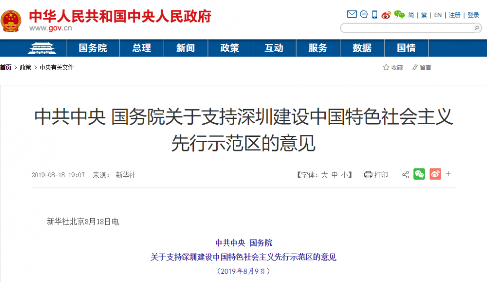 黨和國家作出興辦經(jīng)濟(jì)特區(qū)重大戰(zhàn)略部署以來,深圳經(jīng)濟(jì)特區(qū)作為我國改革開放的重要窗口,各項(xiàng)事業(yè)取得顯著成績,已成為一座充滿魅力、動力、活力、創(chuàng)新力的國際化創(chuàng)新型城市。當(dāng)前,中國特色社會主義進(jìn)入新時(shí)代,支持深圳高舉新時(shí)代改革開放旗幟、建設(shè)中國特色社會主義先行示范區(qū),有利于在更高起點(diǎn)、更高層次、更高目標(biāo)上推進(jìn)改革開放,形成全面深化改革、全面擴(kuò)大開放新格局;有利于更好實(shí)施粵港澳大灣區(qū)戰(zhàn)略,豐富“一國兩制”事業(yè)發(fā)展新實(shí)踐;有利于率先探索全面建設(shè)社會主義現(xiàn)代化強(qiáng)國新路徑,為實(shí)現(xiàn)中華民族偉大復(fù)興的中國夢提供有力支撐。為全面貫徹落實(shí)習(xí)近平新時(shí)代中國特色社會主義思想和習(xí)近平總書記關(guān)于深圳工作的重要講話和指示批示精神,現(xiàn)就支持深圳建設(shè)中國特色社會主義先行示范區(qū)提出如下意見。