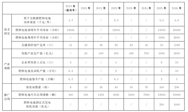 2020年到2022年,為氫能產(chǎn)業(yè)全面起步期。產(chǎn)業(yè)發(fā)展制度體系逐步完善,聚集100家以上的氫能產(chǎn)業(yè)相關(guān)企業(yè),燃料電池發(fā)動機(jī)產(chǎn)能達(dá)到20000臺,燃料電池整車產(chǎn)能達(dá)到5000輛,加快布局燃料電池軌道交通、港口機(jī)械、船舶及分布式發(fā)電裝備產(chǎn)業(yè),氫能產(chǎn)業(yè)總產(chǎn)值規(guī)模突破200億元。工業(yè)副產(chǎn)氫純化、燃料電池發(fā)動機(jī)、關(guān)鍵材料及動力系統(tǒng)集成等核心技術(shù)率先取得突破,達(dá)到國內(nèi)先進(jìn)水平。有序推進(jìn)加氫基礎(chǔ)設(shè)施建設(shè),累計建成加氫站30座(含與其他能源合建站);試點示范取得初步成效,燃料電池汽車在公交、物流等商用車領(lǐng)域率先示范推廣,省域內(nèi)累計示范推廣燃料電池汽車3000輛左右;實現(xiàn)燃料電池在應(yīng)急電源、通信基站、儲能等領(lǐng)域的試點示范。