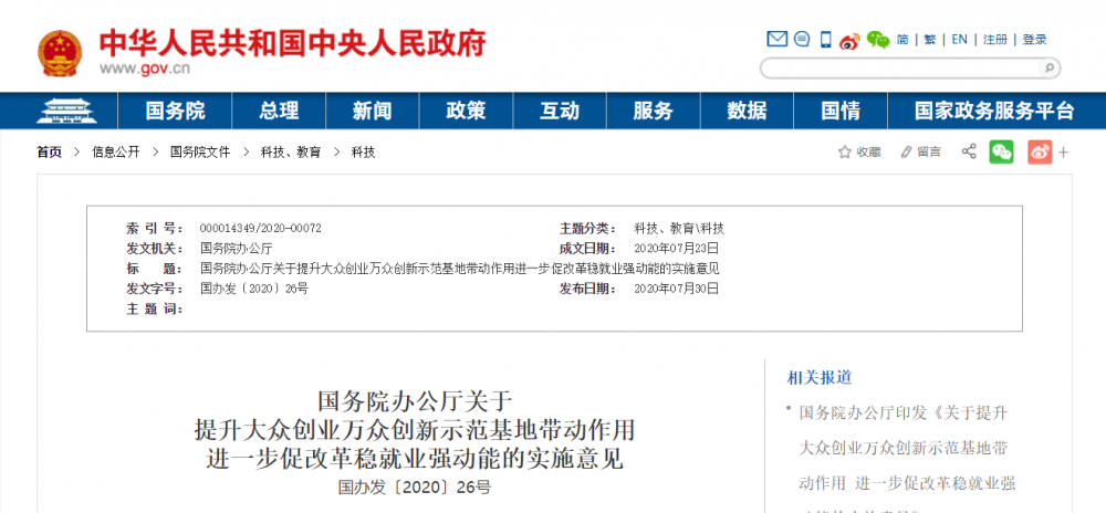 國務(wù)院辦公廳印發(fā)《關(guān)于提升大眾創(chuàng)業(yè)萬眾創(chuàng)新示范基地帶動(dòng)作用 進(jìn)一步促改革穩(wěn)就業(yè)強(qiáng)動(dòng)能的實(shí)施意見》