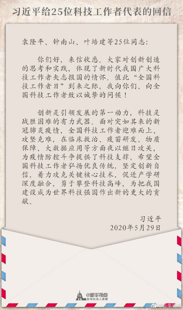 “科技是戰(zhàn)勝困難的有力武器”——今年5月,習(xí)近平給25位科技工作者代表回信時(shí)這樣勉勵(lì)。