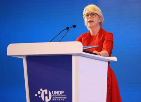 左圖:聯(lián)合國開發(fā)計劃署駐華代表白雅婷(Beate Trankmann)致辭