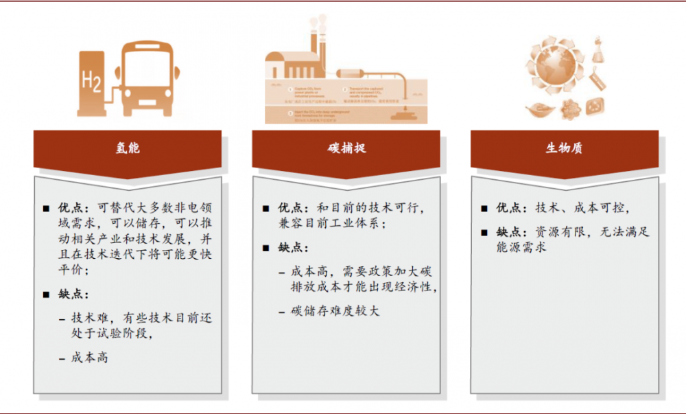 ?氫能可能是最終解決方案。我們認(rèn)為要實(shí)現(xiàn)能源最終的能源碳中和必須在非電領(lǐng)域推動(dòng)新的技術(shù)發(fā)展和應(yīng)用,目前來(lái)看主要有三個(gè)解決方案,分別是氫能源、碳捕捉和生物質(zhì)。但是考慮到生物質(zhì)資源上的限制,以及碳捕捉對(duì)于政策要求,氫能在產(chǎn)業(yè)發(fā)展,技術(shù)迭代上優(yōu)勢(shì)更強(qiáng),因此更有可能是最終解決方案。