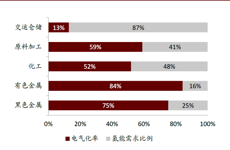 圖: 幾個(gè)主要板塊的電氣化率預(yù)期以及預(yù)期氫能需求貢獻(xiàn)比例(2060年)