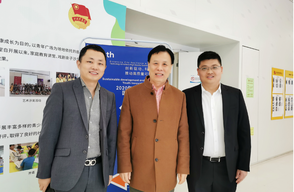 深圳可持續(xù)發(fā)展研究院院長 張亞龍、深圳市青年創(chuàng)業(yè)促進會理事長 陳代興、香港衛(wèi)視主持人Alex 合影