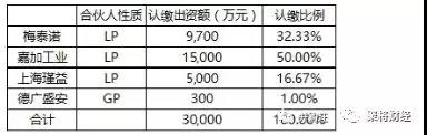 2015 年2 月27 日,梅泰諾與嘉加工業(yè)、上海瑾益及德廣盛安共同發(fā)起設(shè)立產(chǎn)業(yè)基金上海錦阜投資管理中心(有限合伙)。由德廣盛安擔(dān)任合伙企業(yè)的普通合伙人/管理人。各方的認(rèn)繳出資額和比例如下: