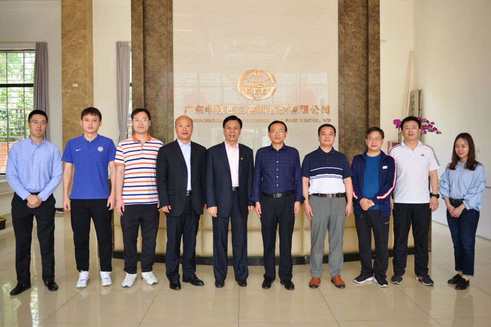 中鐵領(lǐng)導(dǎo)和科谷一行交流合影 科技局溫局長向科谷余主席一行介紹西江的發(fā)展