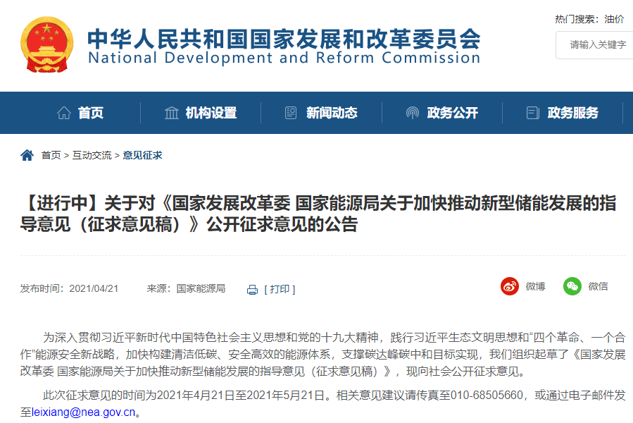 國家發(fā)展改革委 國家能源局關(guān)于加快推動(dòng)新型儲(chǔ)能發(fā)展的指導(dǎo)意見(征求意見稿)