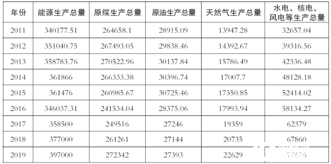 2011~2019年一次能源生產(chǎn)情況(單位:萬噸標(biāo)準(zhǔn)煤)