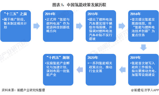 政策歷程圖氫能產(chǎn)業(yè)近年來在我國獲得了前所未有的關(guān)注,從早期的推廣階段,到2019年首次被政府報(bào)告提及,再到“十四五”規(guī)劃中首次出現(xiàn)在“五年規(guī)劃”中,氫能源行業(yè)的政策發(fā)展實(shí)現(xiàn)了“從無到有”的快速變化。根據(jù)《“十四五”規(guī)劃和2035年遠(yuǎn)景目標(biāo)剛要》,未來將要實(shí)施氫能產(chǎn)業(yè)孵化與加速計(jì)劃,謀劃布局一批氫能產(chǎn)業(yè)。